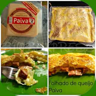 Estenda a massa folhada, disponha 4 fatias de queijo por cima da massa até metade do tamanho.