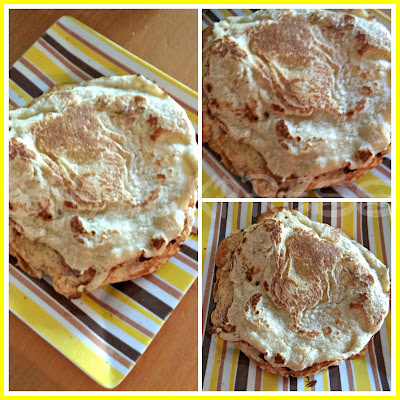 Com a ajuda de 2 colheres de sopa colocar pequenas porções de massa na frigideira espalhando, (a consistência é diferente das panquecas habituais, parecendo massa de pão ligeiramente) e deixar cozinhar até a panqueca começar a ganhar bolhas, e está pronta a ser virada (cuidado com a temperatura para não as escurecer demasiado).
