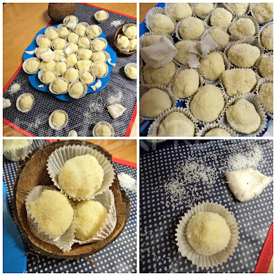 Bem, os meus filhos adoram Raffaello (e a mãe também!!!). Andavam ao tempo a pedir-me para fazer estes bombons mas resolvi fazer uma receita diferente para experimentar.